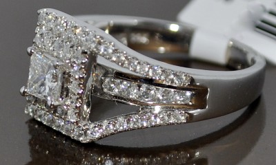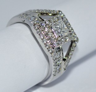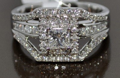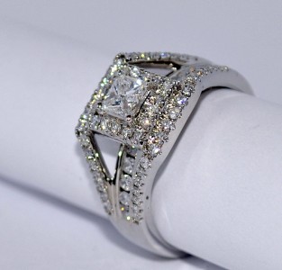 STUNNING ONE OF A KIND PRINCESS CUT SOLITAIRE WEDDING RING WITH 3 IN ONE STYLE JACKET ALL ATTACHED AS 1 PIECE 1.4CT 14K WHITE GOLD