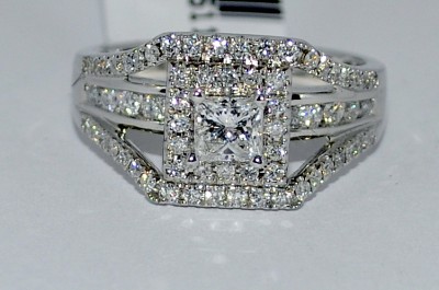 PRINCESS CUT DIAMOND RING WEDDING SET 1.4CT WHITE GOLD 3 IN 1 HALO SOLITAIRE